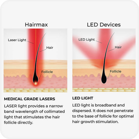 4. Top-Tier Technology: Professional- ResultsOur devices use 100% medical-grade laser diodes—far superior to LEDs for hair regrowth. While LEDs are commonly used for surface treatments, they lack the power to penetrate deeply enough to reach the hair follicles. Hairmax lasers, on the other hand, emit focused light energy at the optimal 655nm wavelength, clinically proven to stimulate hair growth effectively. This precise wavelength targets the follicles directly, providing the deep penetration needed to trigger regrowth at the root. It’s this superior technology that sets Hairmax apart for truly effective hair restoration. Shop Now |